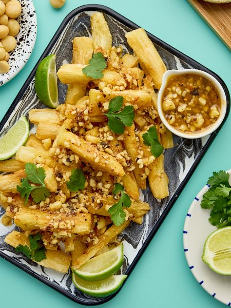Fried Yuca With Spicy Macadamia Nut Vinaigrette