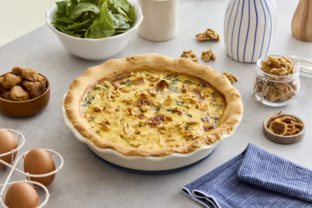 A creamy quiche that blends the softness of sautéed spinach, the crunch of walnuts, and the sweetness of dried figs.🌿The goat cheese adds a mild, tangy flavor that perfectly balances the dish, all nestled in a crispy, golden pastry crust.🥧